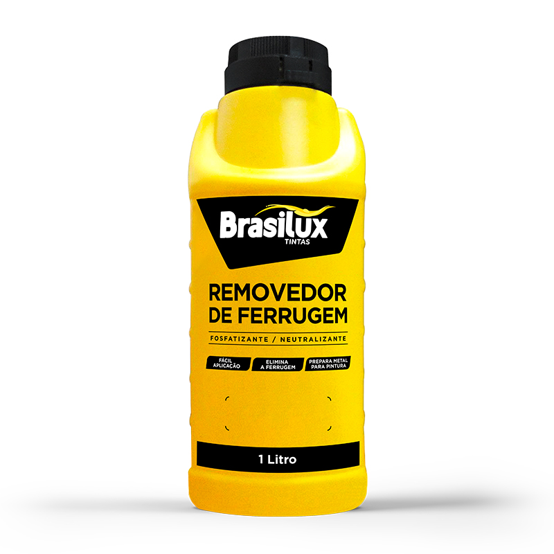 Removedor de ferrugem BRASILUX é Indicado e desenvolvido especialmente para remover resíduos de ferrugem e fosfatizar à superfície oxidada de metais ferrosos, conferindo uma camada protetiva anticorrosiva e melhorando a ancoragem da tinta de fundo e de acabamento. Não é recomendado seu uso sobre cromados ou niquelados.